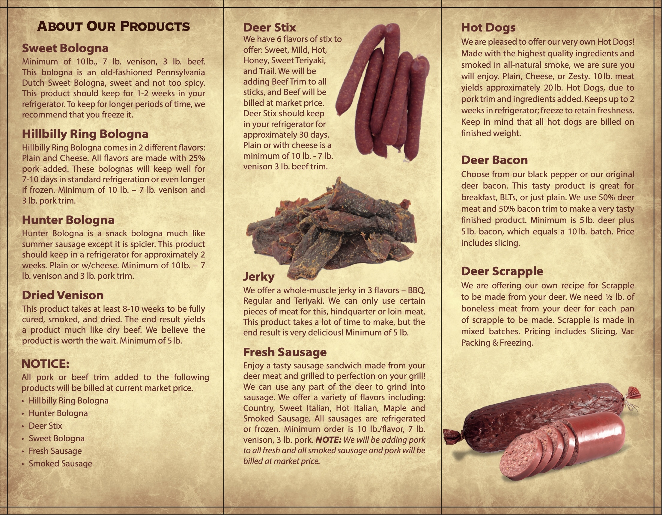 • Deer Patties Discontinued: Please note, we no longer make deer patties as part of our processing options.